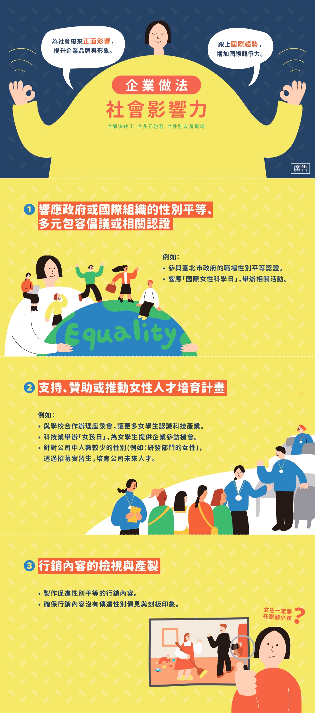 行政院製作之性別友善職場圖文懶人包及《Look up! 拯救公司大作戰》性別友善職場動畫短片